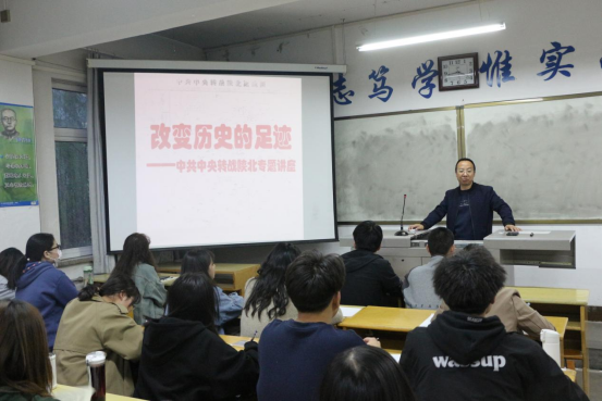 马克思主义公司副教授张辉为入党积极分子详细讲解了中共中央转战陕北的特点、背景及历史进程。张辉讲到,在转战陕北的过程中,中共中央有明确的目的性、高超的策略性、难料的曲折性和广泛的参与性,这一曲折的历程向我们诉说着党的艰辛,如今的繁荣昌盛是多么的来之不易。张辉强调,作为一名入党积极分子应当有执着坚定的理想信念,敢为人先的担当意识,吃苦耐劳的奋斗精神和团结合作的大局意识。
