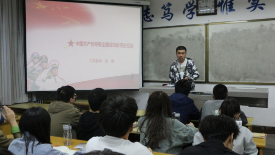杨帆为入党积极分子讲解了中国共产党夺取全国政权的历史经验。杨帆讲到,在抗日战争结束之后,国共双方力量对比非常悬殊,国民党军队多,占领的土地面积多,而且还有美国等多个强国的支持,即使是这样,中国共产党还是仅仅用了三年的时间,成功的战胜了国民党反动派,夺取了全国政权。其主要历史经验可以概括为:1、正确处理农民问题,赢得农民支持;2、实行正确的军事战略战术;3、争取和实行民主,赢得中坚力量的拥护;4、把党建立成坚强的领导核心。