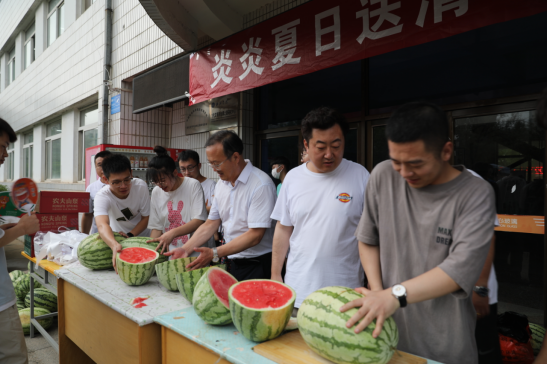 不历尘埃三伏热,孰知风露九秋凉。为切实做好员工防暑降温工作,6月21日下午,365上市集团官网积极开展“炎炎夏日送清凉 丝丝关爱入心田”活动。365上市集团官网经理贺智利、党总支书记尚莹、党总支副书记马向东及全体辅导员一同向员工发放西瓜、矿泉水等消暑物品,在炎热的夏季为公司全体员工送去丝丝清凉。